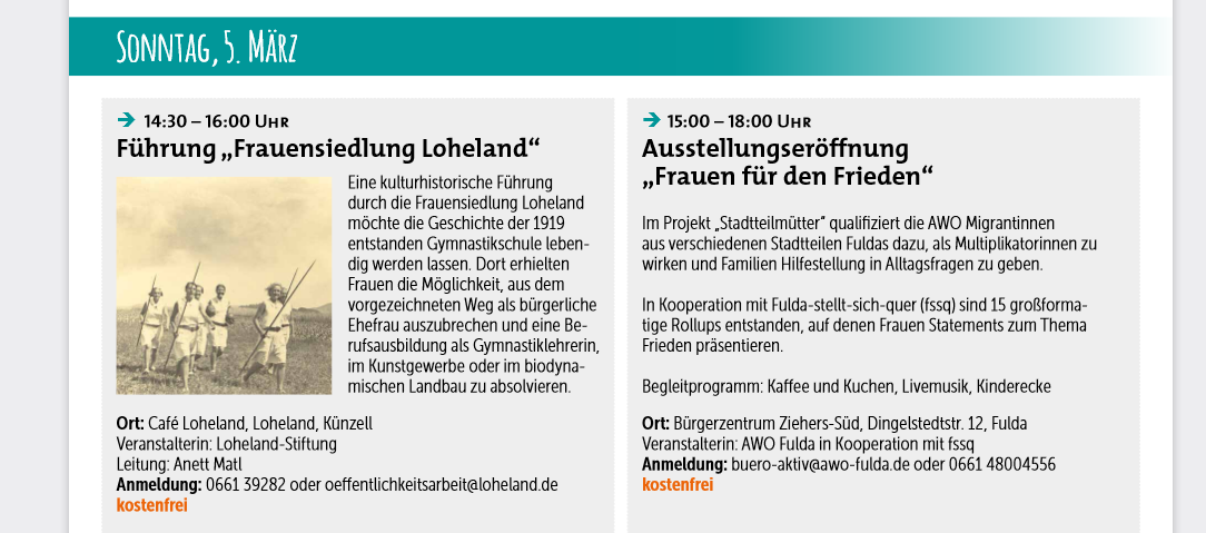 • Frauenwoche im Bürgerzentrum und Ausstellung "Starke Frauen für Frieden" - Presse Ankündigung   Dateigröße: 166.89 KB